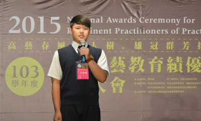 今天能夠獲得好成績,第一個要感謝學校的優質教學團隊,更感謝當初拉我一把的淑娟老師,每次遇到技術上的瓶頸都會給我加油打氣,鼓勵我要相信自己,肯定自己,不要害怕挫折,並勉勵我多涵養人文的素養,以提升作品的美感與質感。感謝淑如老師就連假日都到學校來指導我,使我的技術更加精熟,凡事盡心盡力的幫助與設想,不讓我的心情受到影響,像媽媽一樣的照顧我、鼓勵我、讚美我,說我表現不錯,也指正我哪裡還需要改進,最重要的是老師讓我學會謙虛和回饋,這樣才能學到更多。還要有善良的心去幫助人,這樣才會有福報,這樣的教導,讓我人生成長,使我的心能夠更勇往直前,相信老師是我人生中的貴人。
