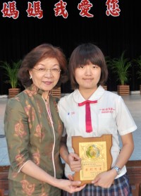 5月11日在母親節慶祝活動中,我從校長的手中接到[孝悌楷模]獎章,對我而言是一個肯定,也是最大的榮耀!