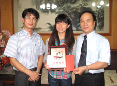 那時謝珍元老師推薦我為孝行獎的參選人,中間要準備的資料很多,老師們都不厭其煩的幫助我,使我在今年五月榮獲孝悌楷模獎。