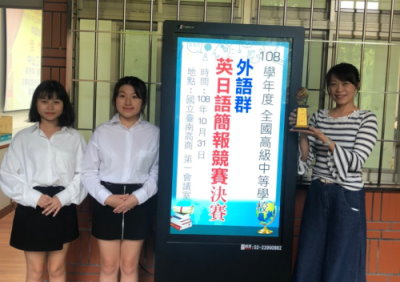 AAA全國高中職日語簡報比賽是我第一個校外比賽,一開始是以嘗試看看的心情來準備比賽,在校內經過初賽後,我與隊員們的心態,已從試看看轉變為希望能有個好名次,正式成為選手準備的期間,真的非常辛苦,從不太會做簡報到日文口稿的產生,中間不斷的被修改,當然產生了不少挫折。比賽準備的後期,在不同班級不間斷地練習,直到比賽完才真正是放鬆的時候,現在回想起當時的景象,依然感動。